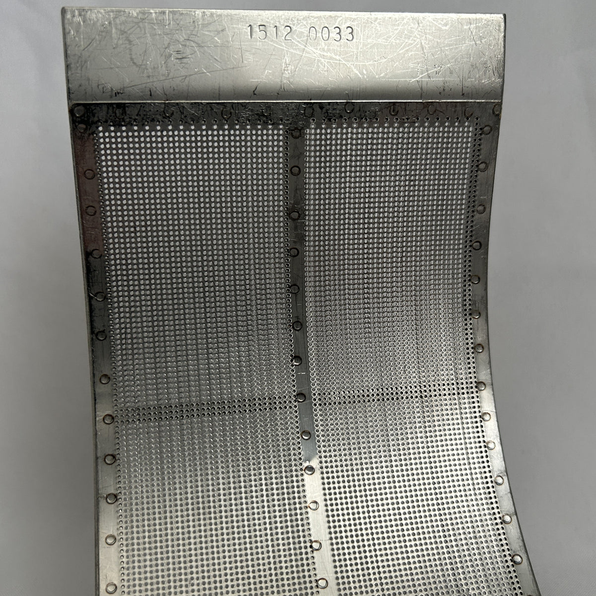 0.033" (20-mesh) round hole screen for Fitzpatrick M5A Fitzmills. OEM part# 1512 0033. Used/Good condition.