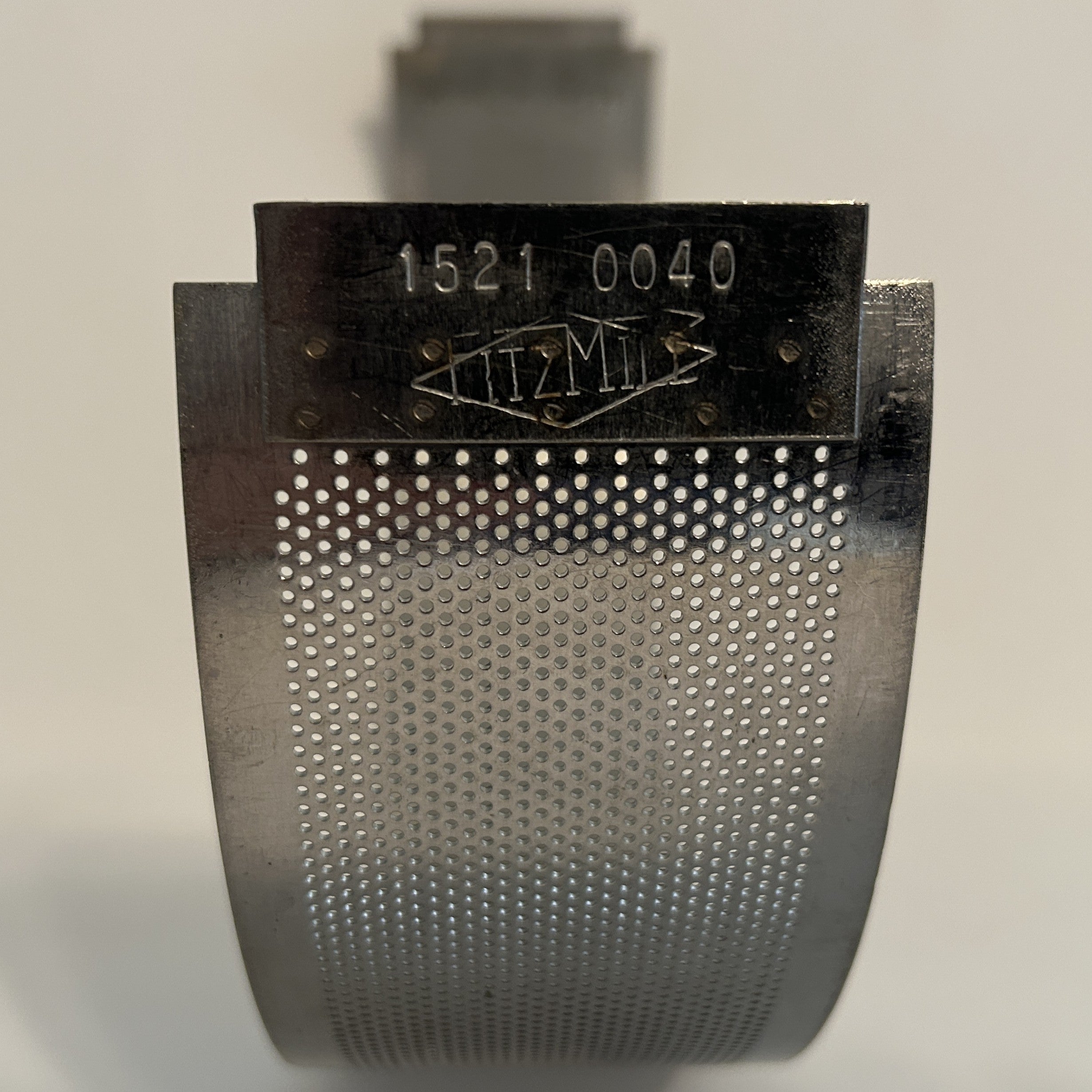 0.040" (18-mesh) round hole screen for Fitzpatrick model J Homoloid mills. OEM part# 1522 0040. Used/Good condition.