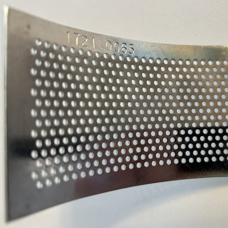 0.065" (12-mesh) round hole screen for Fitzpatrick L1A, SLS and IR220 Fitzmills, OEM part# 1721 0065. Used/Good Condition.