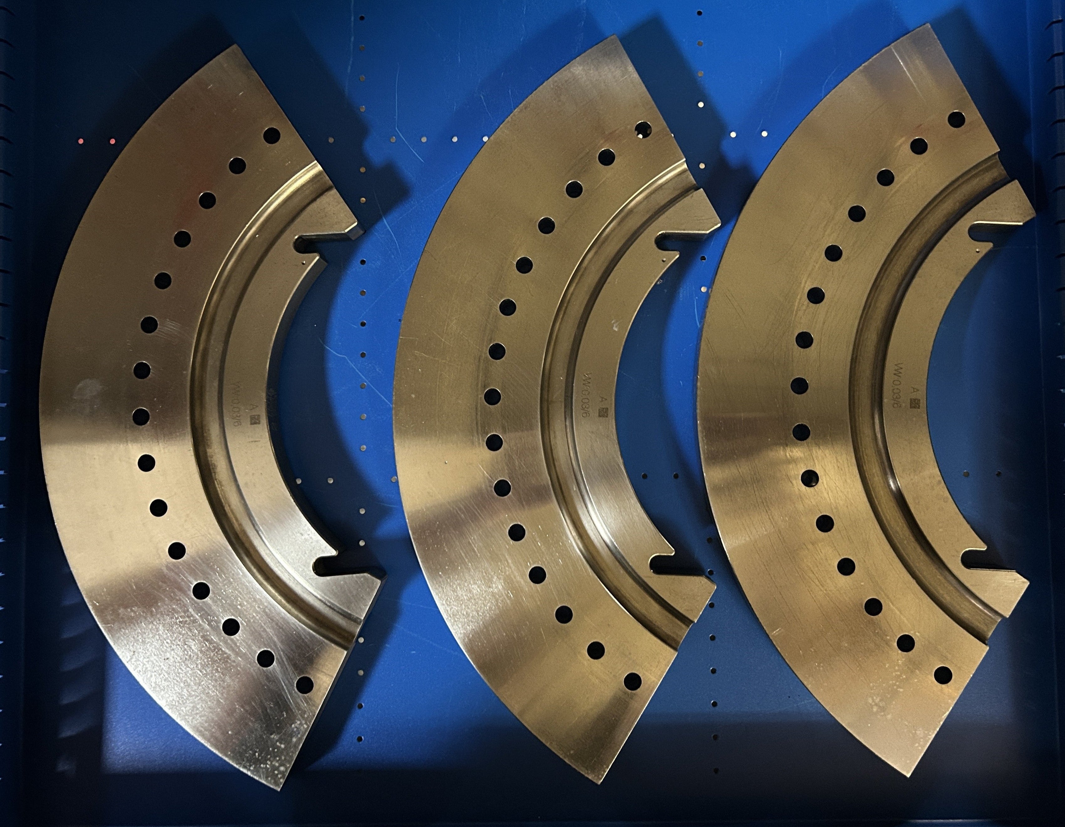13/32” turret segments for Fette 2090i tablet presses. Three-piece set. OEM part# 9160629. Used/Good condition.