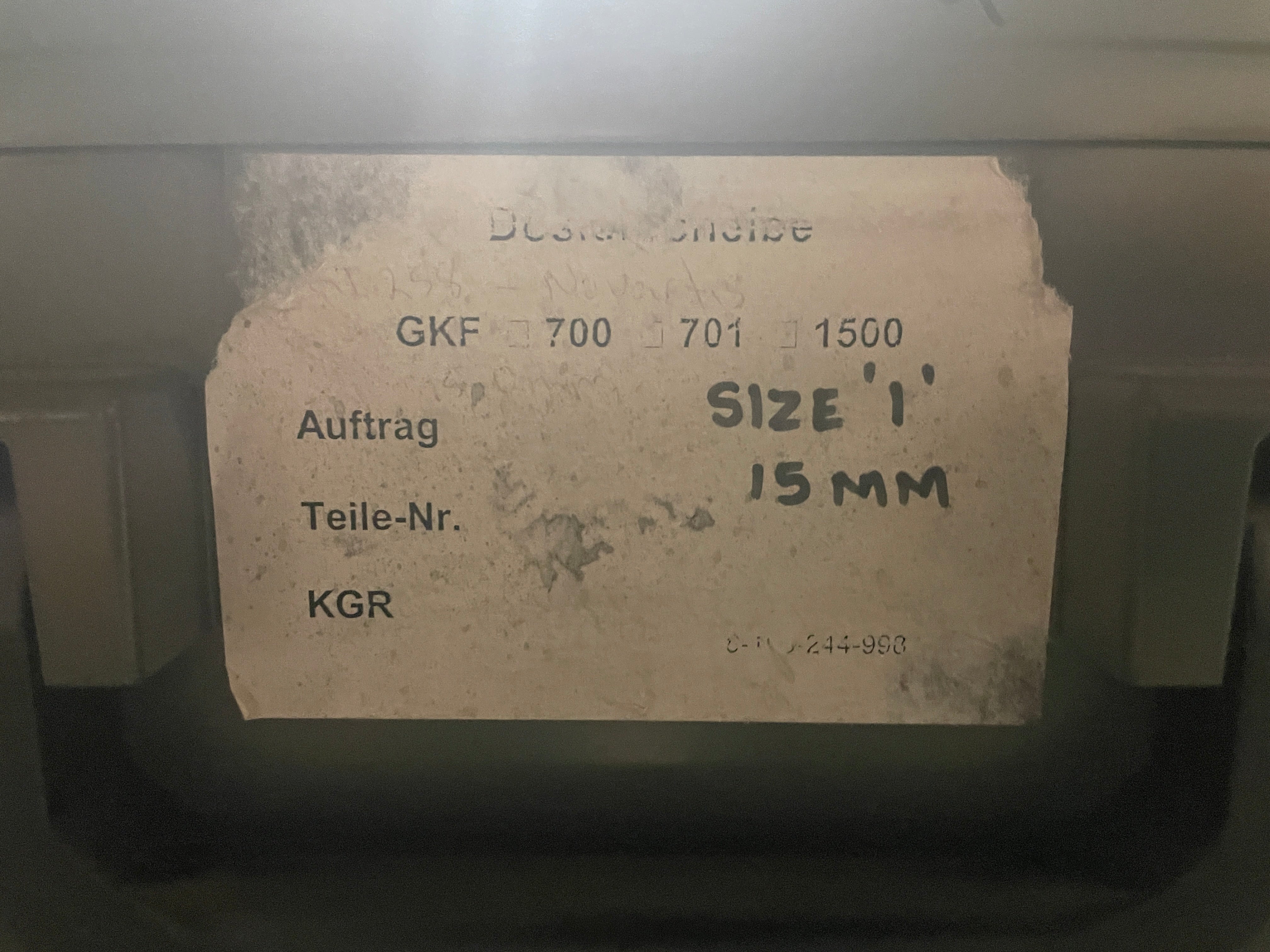 Dosing disk size 1, 15mm fill for Bosch GKF 1500. OEM is Bosch. Used/Good condition.