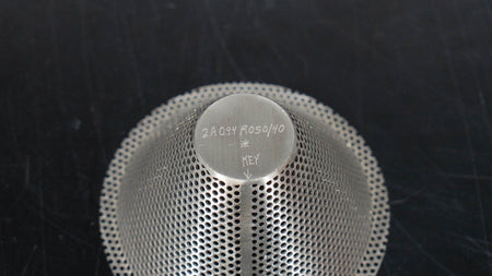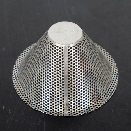 0.094" (8-Mesh) round hole screen for Quadro 197 Comils, OEM part# 2A094R050/40. Modified: the retaining tab has been removed. Used/Good condition.